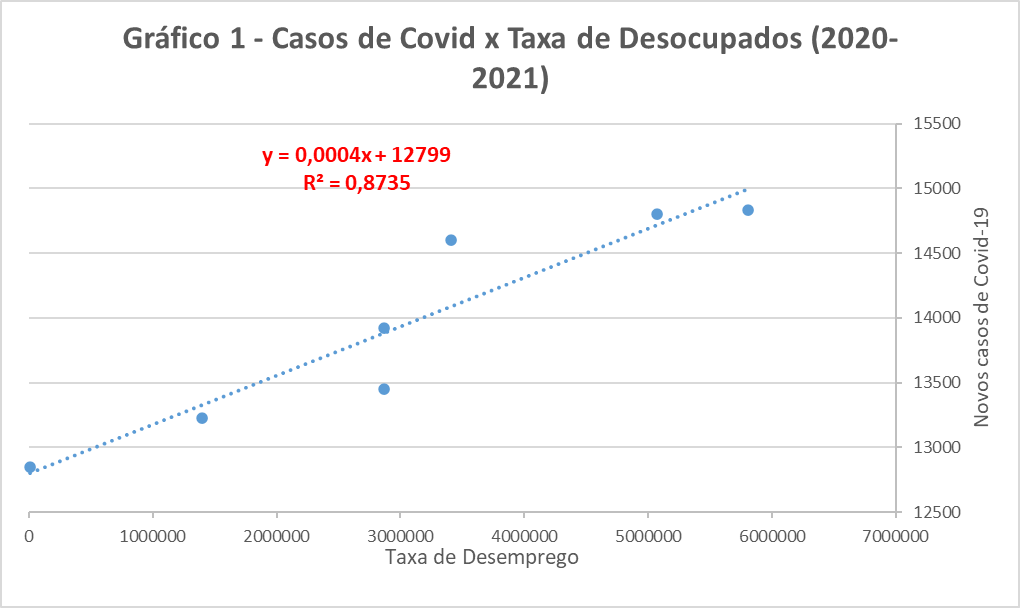 The methodological process began with the choice of the topic addressed, followed by the search for reliable sources of information that have data on unemployment in Brazil during the period of the COVID-19 pandemic (2020-2021), in addition to other data on After collecting the data, their treatment was followed by the elaboration of graphs, aiming to demonstrate the correlation between unemployment and the number of cases of COVID-19.